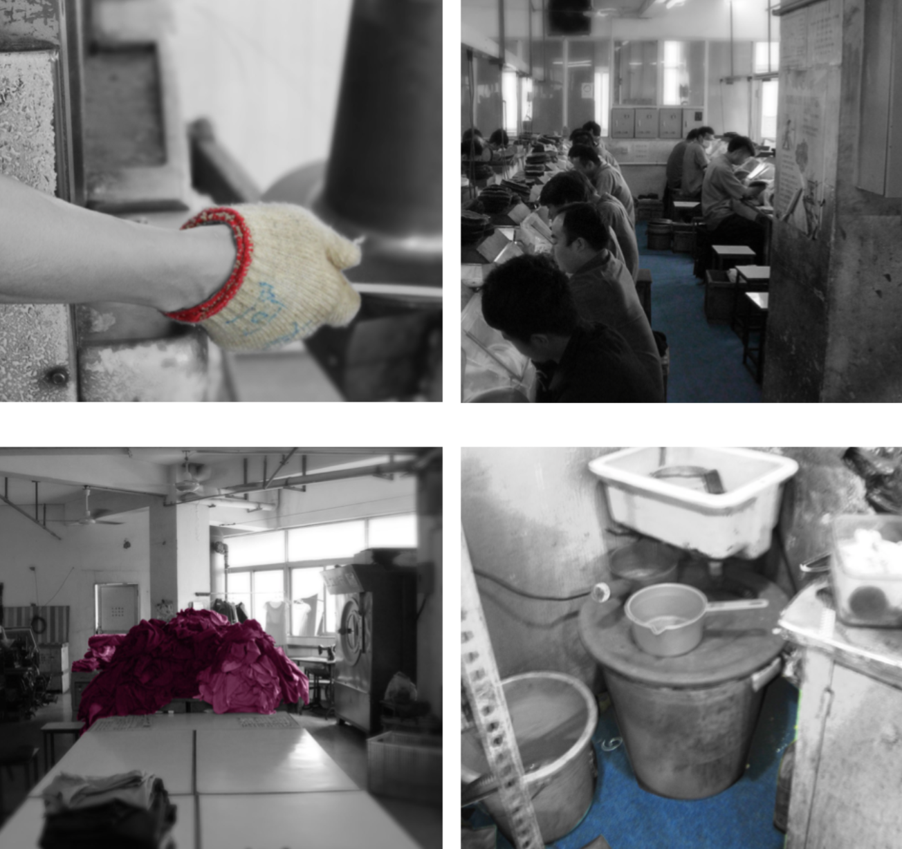 当我来到这些金首饰被生产出来的工厂,工人们小心翼翼地回收着破旧不堪却竟能提炼出数以百万的黄金的地毯、手套、工服和内衣,它们与被生产的、被抢购的金首饰毫无差别,都是承载黄金价值的容器。